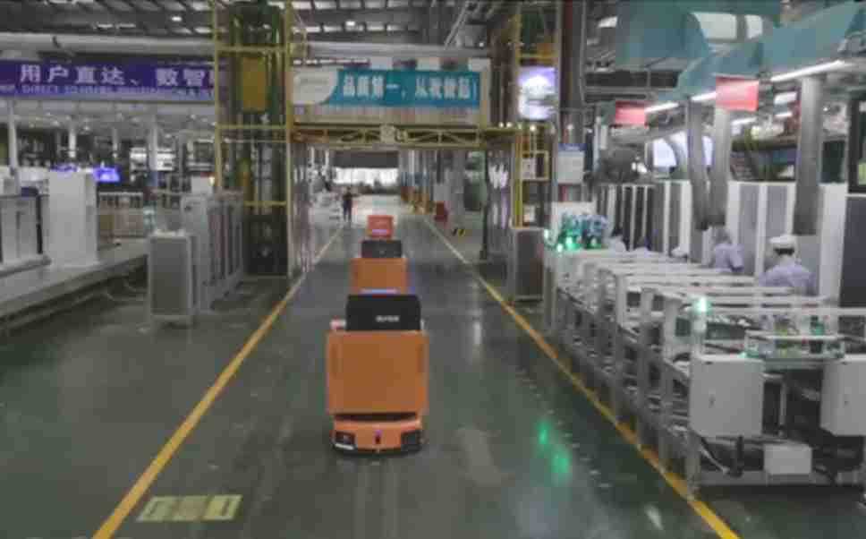 为车载冰箱物流配送打造的智能解决方案,,包含产中物流通过潜伏举升AMR搬运至线边,,,产后成品物流智能仓储,,流程包含产中物流智能齐套入库,,,,线边安灯叫料AMR智能配送至线边,,,成品入库、、、、出库,,通过无人堆高车机器人,,智能仓储管理替代人工作业管理,,实现更高存储、、更高效率、、、更具柔性化的解决方案。。。。